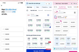 Cùng một hành động “nạp tiền đth”, nhưng một bên thì tối giản đến mức trống, một bên thì tận dụng gần như mọi pixel trên màn hình.