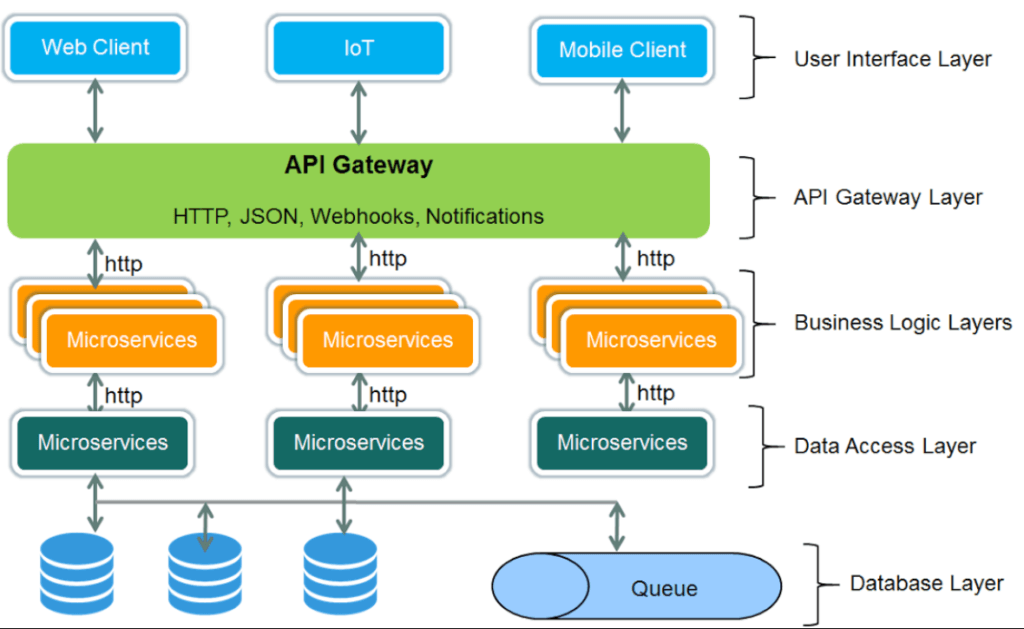 Ở điểm vào của toàn bộ hệ thống là API Gateway. Đây không đơn thuần chỉ là một lớp “forward request”, mà là cửa ngõ kiểm soát truy cập: mọi request từ client, ứng dụng bên thứ ba, hoặc các hệ thống tích hợp đều phải đi qua đây. API Gateway chịu trách nhiệm routing, load balancing, xác thực (ví dụ JWT), rate limiting… Nói cách khác, đây là nơi đầu tiên có thể giảm thiểu rủi ro trước khi request chạm vào logic nghiệp vụ.